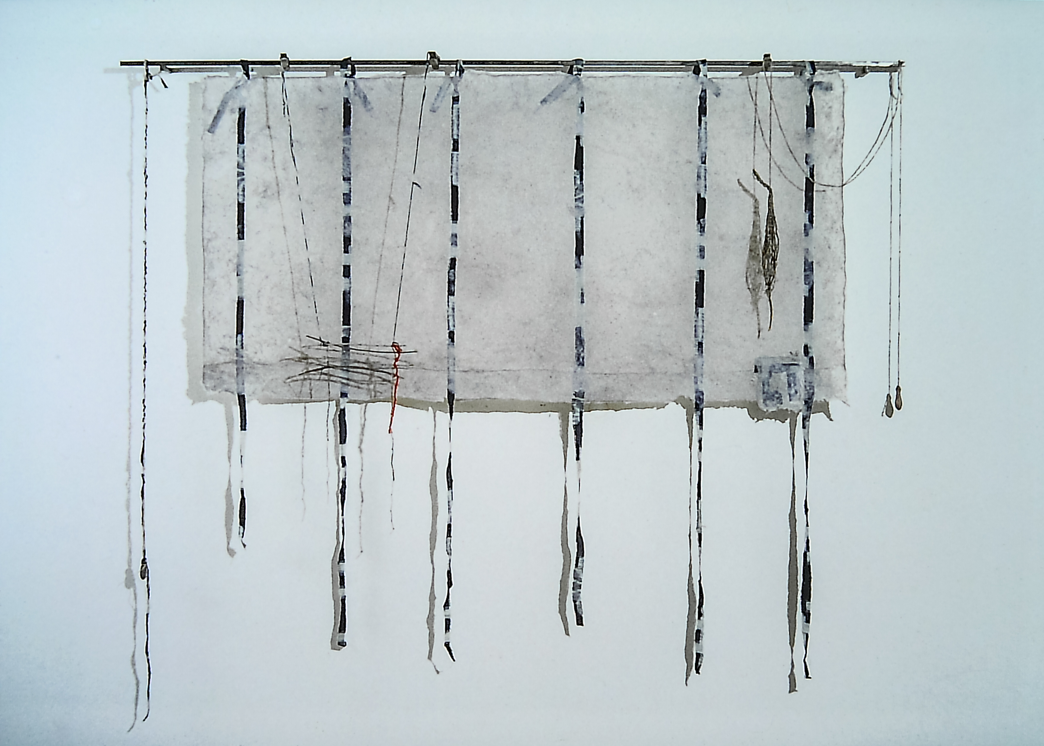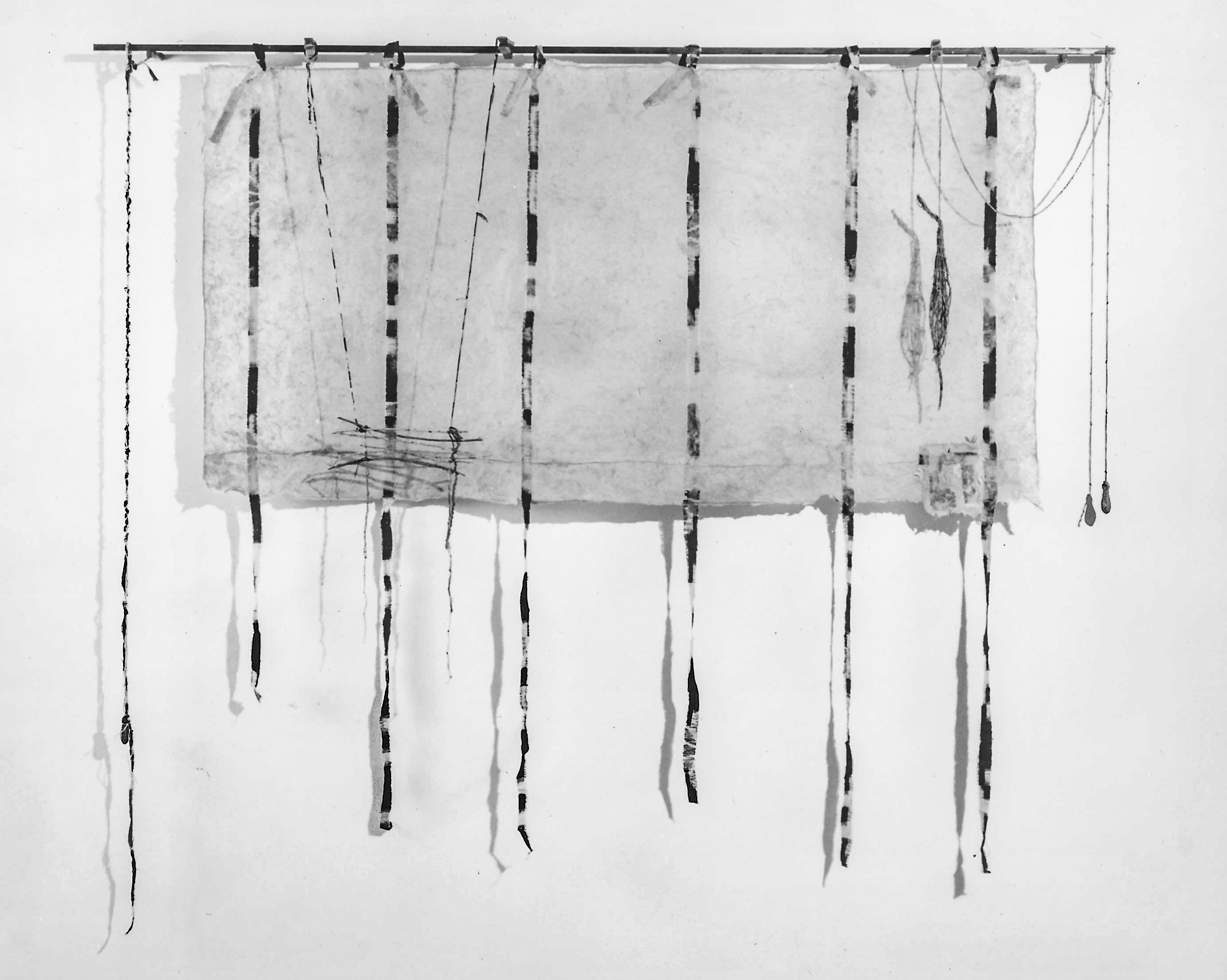 A Shadow Hushed the Night Owl’s Call, 1991 Handmade flax paper, antique Japanese cloth, steel50 x 50 x 2 in.