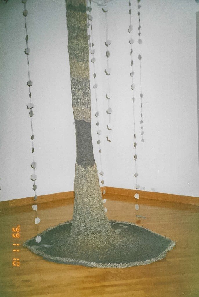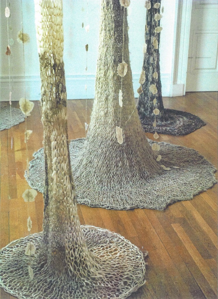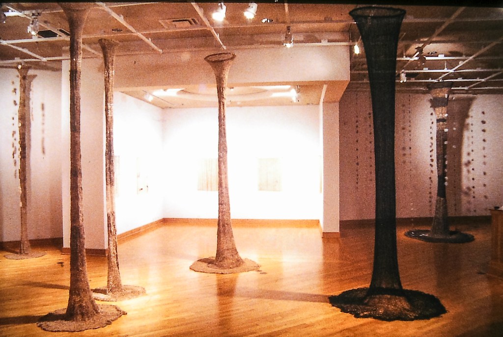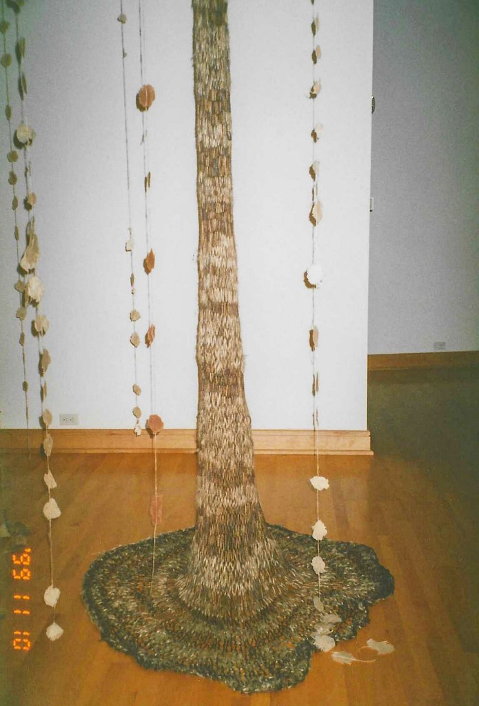“I feel very strongly that what an artist makes should be accessible to the viewer without a long written description of what it means. With making an installation, I have found that as I work, the piece begins to relate to something from my life… the last group of trees… I realized that they reminded me of the elm trees that lined the brick paved streets of Urbana, Illinois.